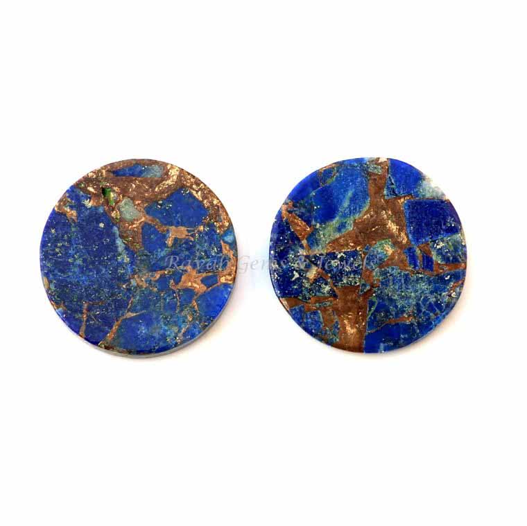 Copper Lapis Lazuli Round Disc Shape Both Side Flat Gemstone For Jewelry Making | Loose Beads Calibrated Stone 2 Pcs 12mm And All Sizes
