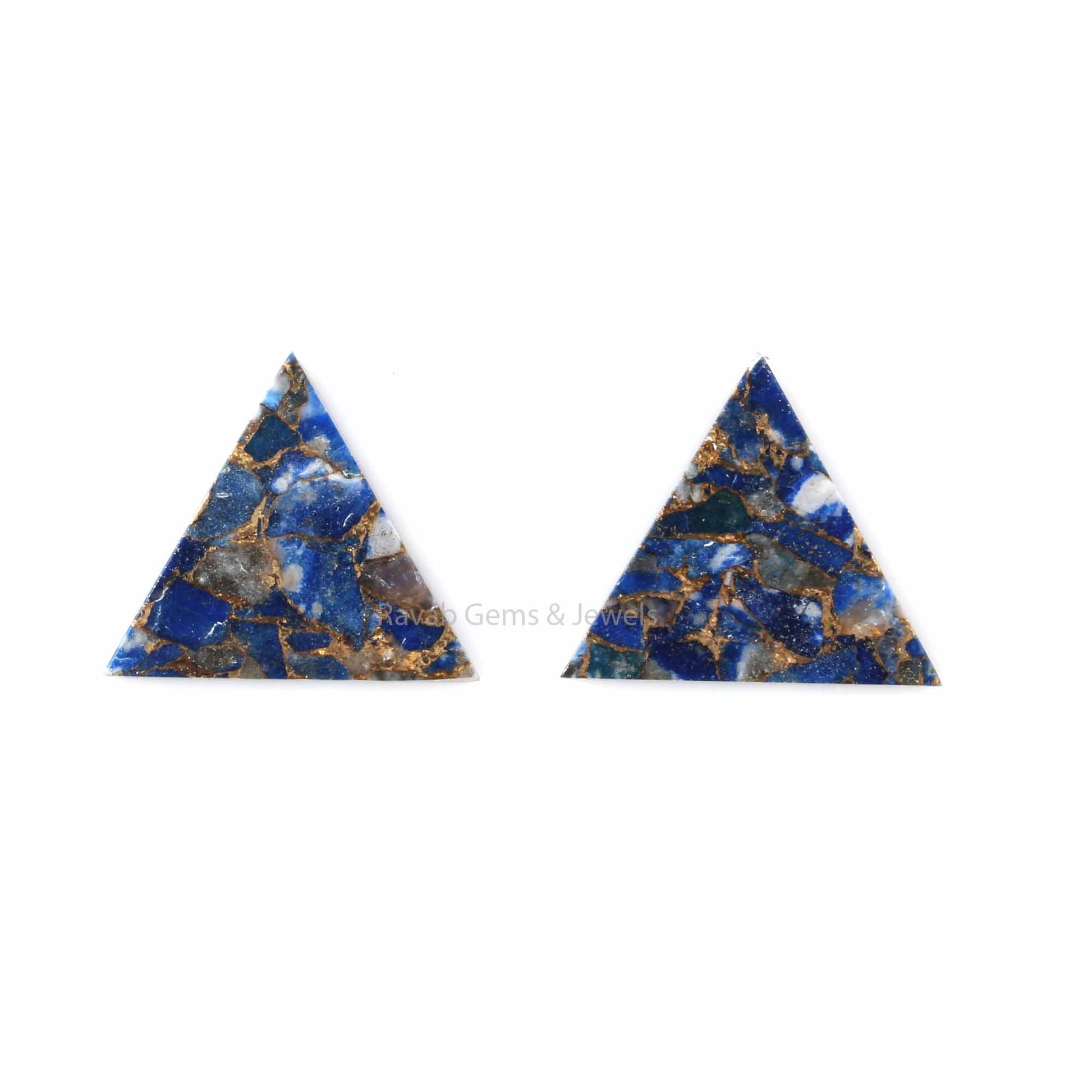 Copper Lapis Lazuli Triangle Shape Smooth Flat Gemstone For Jewelry Making | Loose Beads Calibrated 2 Pcs 12mm And All Sizes Available