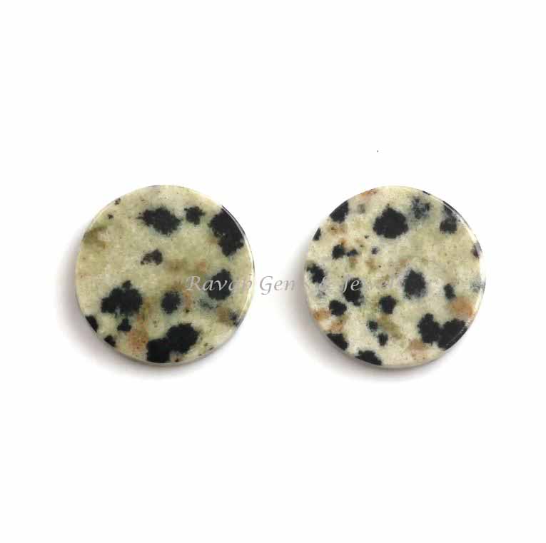 Dalmatian Jasper Round Coin shape 12mm Flat Gemstone for jewelry making, Dalmatian Jasper ring, pendant, earrings making beads 2 pcs set,