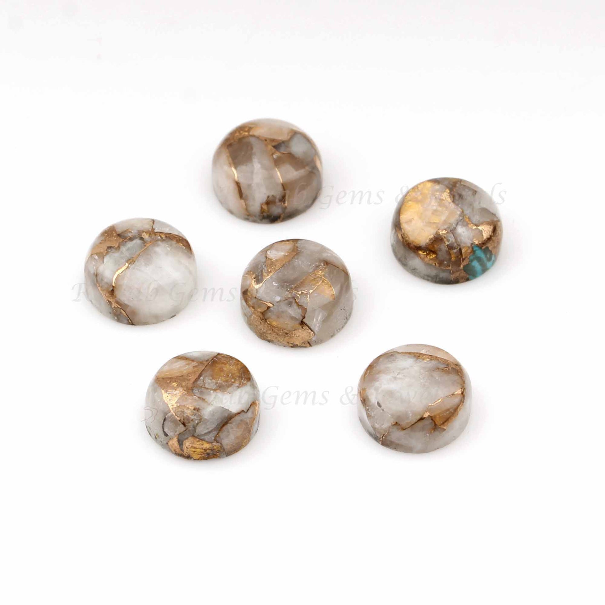 Ethnic White Calcite Copper Round Shape Cabochon Gemstone- Smooth Calibrated Loose Gemstone For Jewelry Making- 5 Pcs Set 10mm