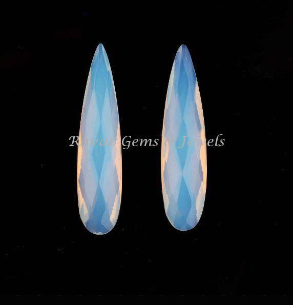 Opalite Long Pear shape Briolette 8x35mm beads 2 pieces set for jewelry making.