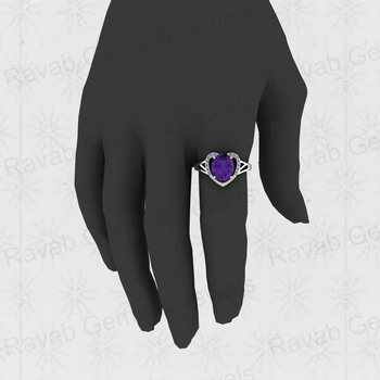 Hot Selling 8x10mm Oval Amethyst Solid 925 Sterling Silver Heart-Shaped Prong Ring for Women Fine Anniversary Ring
