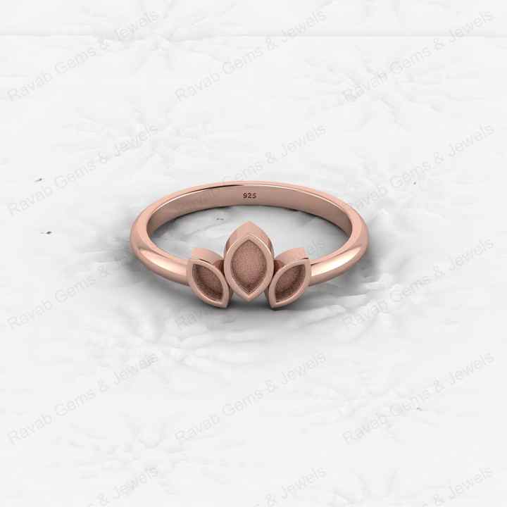 Genuine 925 Silver 2x4mm to 3x5mm Triple Marquise Semi Mount Blank Setting Ring Good for Resin & Ashes Work Keepsake DIY Jewelry