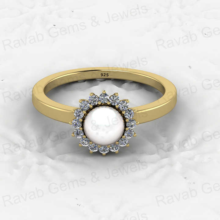 High Quality Genuine 925 Sterling Solid Silver 6mm Genuine Fresh Water Of Pearl Floral Halo Band Wedding Wear Ring For Women