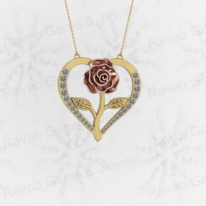 Beautiful 925 Silver 30mm Rose Leaf Flower in Heart CZ Valentines Day Dainty Pendant Necklace Personalized Love Keepsake Jewelry