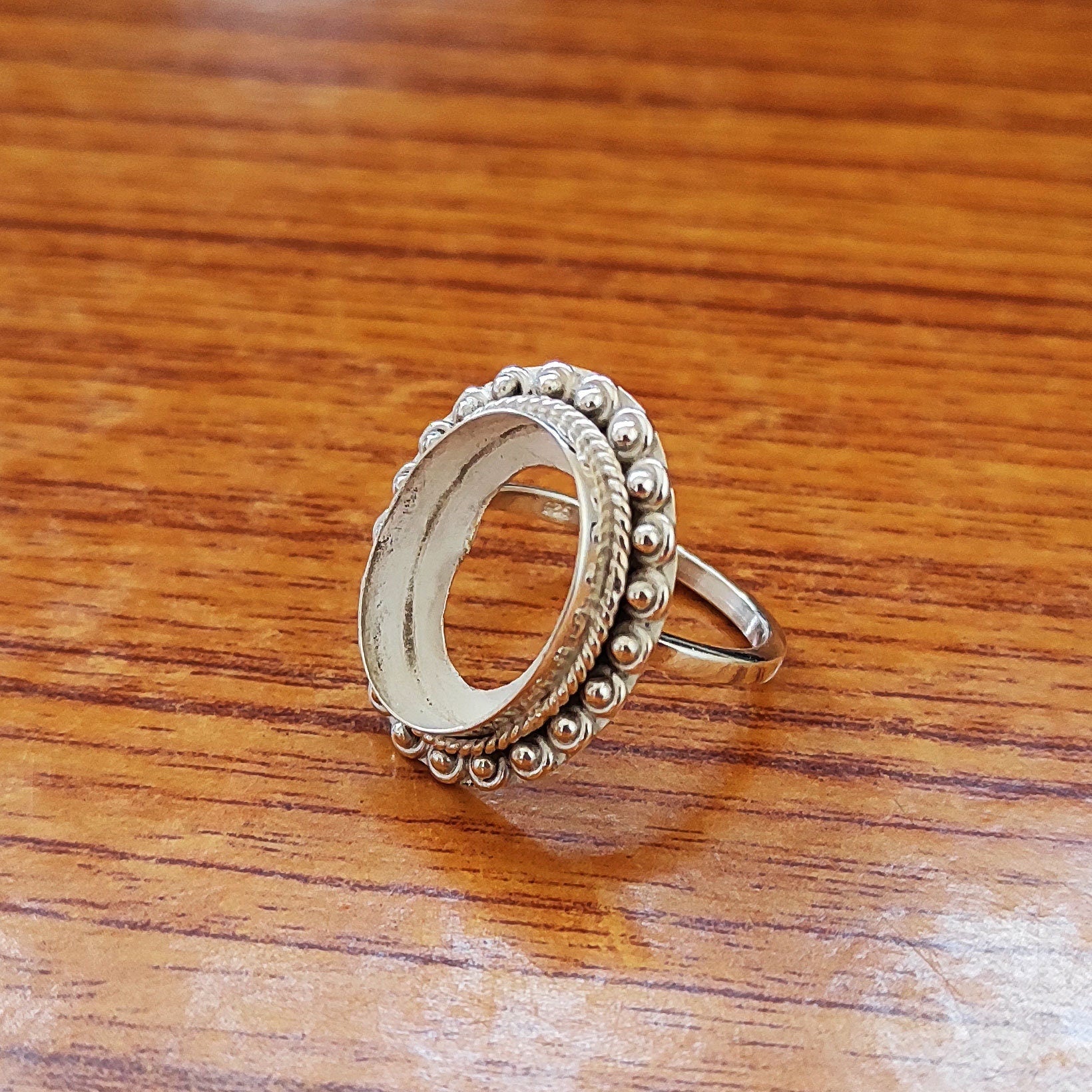 Genuine 925 Sterling Silver 8x10mm Bezel Setting Beaded Design Semi-Mount Blank Setting Handmade Custom Fine Ring For Women