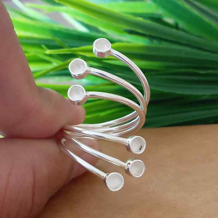 Solid 925 Sterling Silver Plain Bezel Cup Round Close Blank Collet Ring Bezel Setting Semi-Mount Blank Setting Ring Jewelry