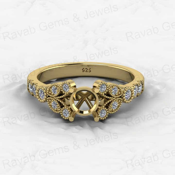 Solid 925 Silver 6mm Pave CZ Diamond Semi Mount Top Quality Filigree Open Blank Ring Prong Setting Memorial Jewelry DIY Findings