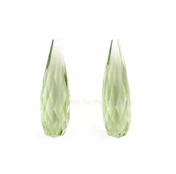 Green Amethyst Quartz 8x30mm Long Faceted Drop Gemstone, Calibrated Loose Beads Stone - Pair Drops Earrings - Wholesale Lot Available 2 Pcs