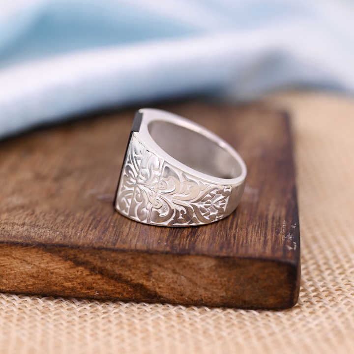 Best Selling 925 Silver 11x16mm Black Onyx Designer Embroidered Turkish Stylish Ottoman Signet Ring for Men Customized Jewelry