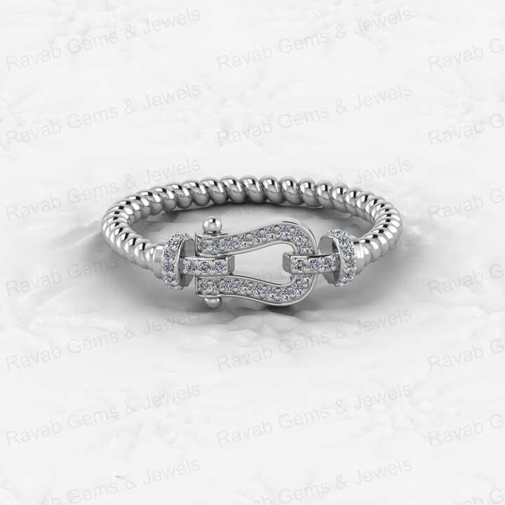 Top Selling Solid 925 Sterling Silver CZ Diamond Heavue Horseshoe Rope Band Ring For Women Personalized Equestrian Fine Jewelry
