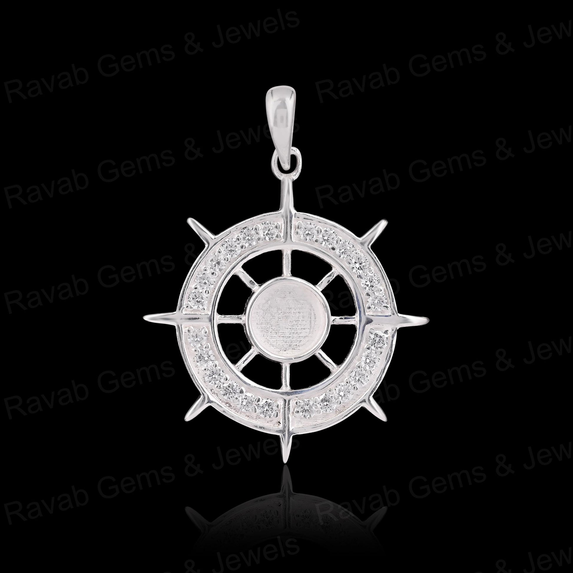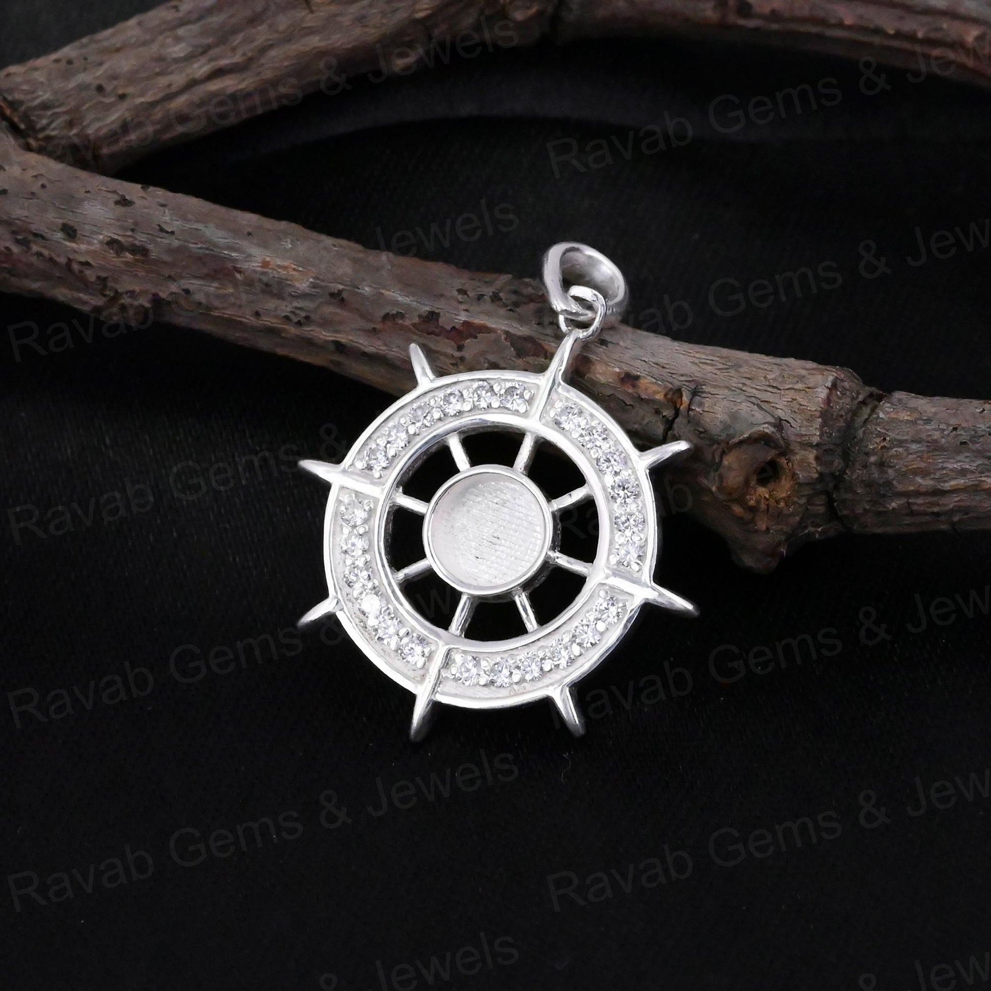 Best Quality 925 Silver 5mm Ocean Helm Ship Wheel Try Zircon Semi Mount Blank Charm Pendant for DIY Jewelry Findings Components