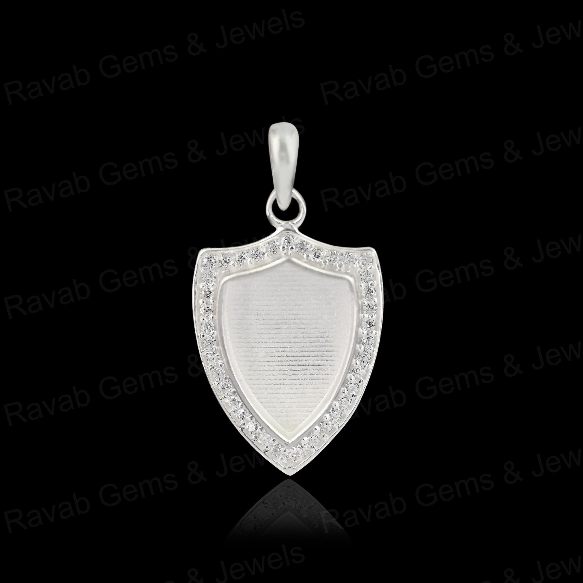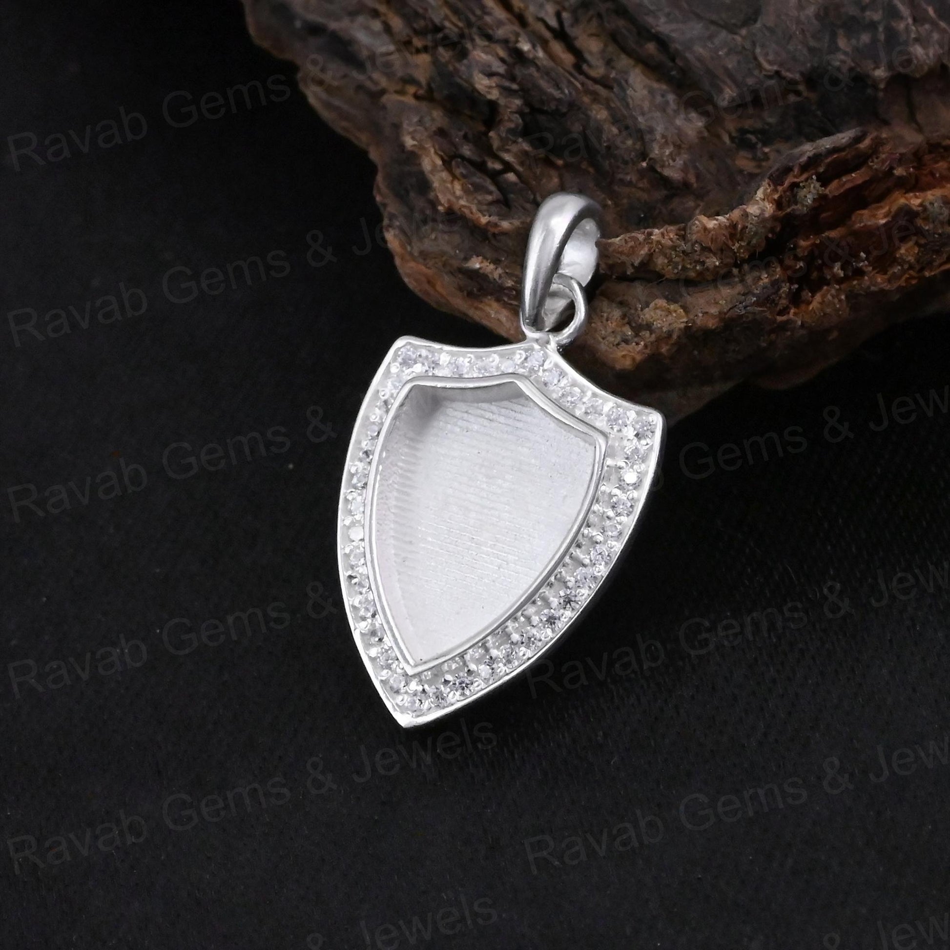 High Quality 925 Silver 12x9mm Shield Surrounded With Zircon Blank Bezel Charm Pendant Setting Resin Ashes Keepsake Jewelry