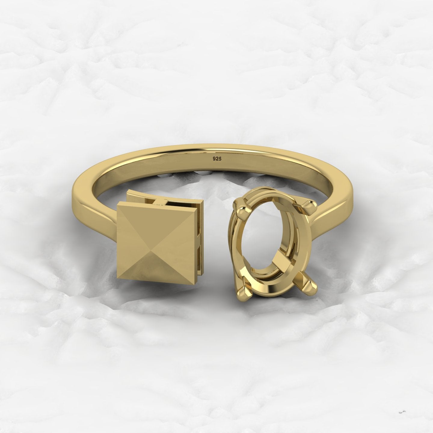 925 Solid Sterling Silver 8x5mm Oval Semi Mount Blank Setting Adjustable Ring For Breastmilk & Keepsake Resin Ceramic Jewelry