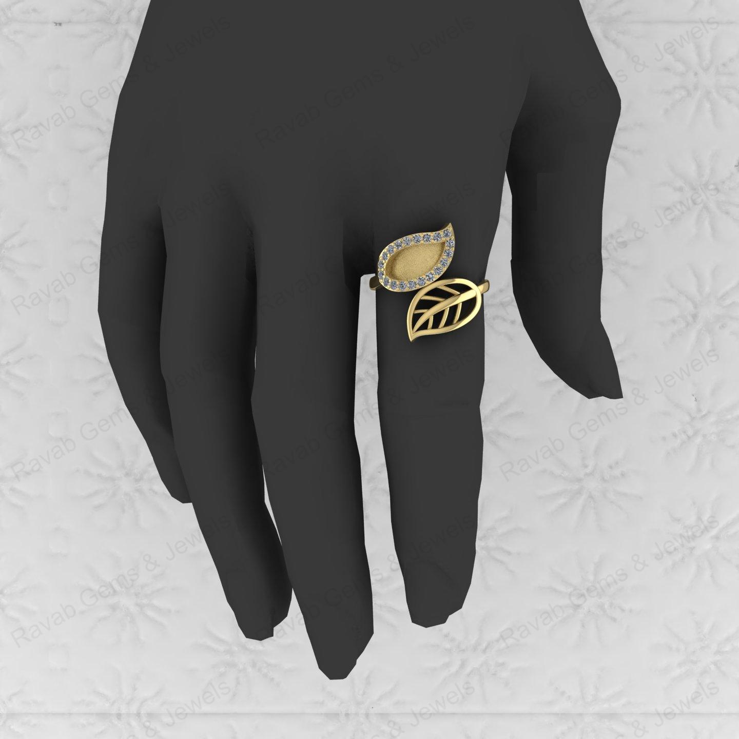Genuine 925 Silver Nature Inspired Leaf With CZ Semi Mount Blank Setting Ring Good for Resin & Ashes Work Keepsake DIY Jewelry