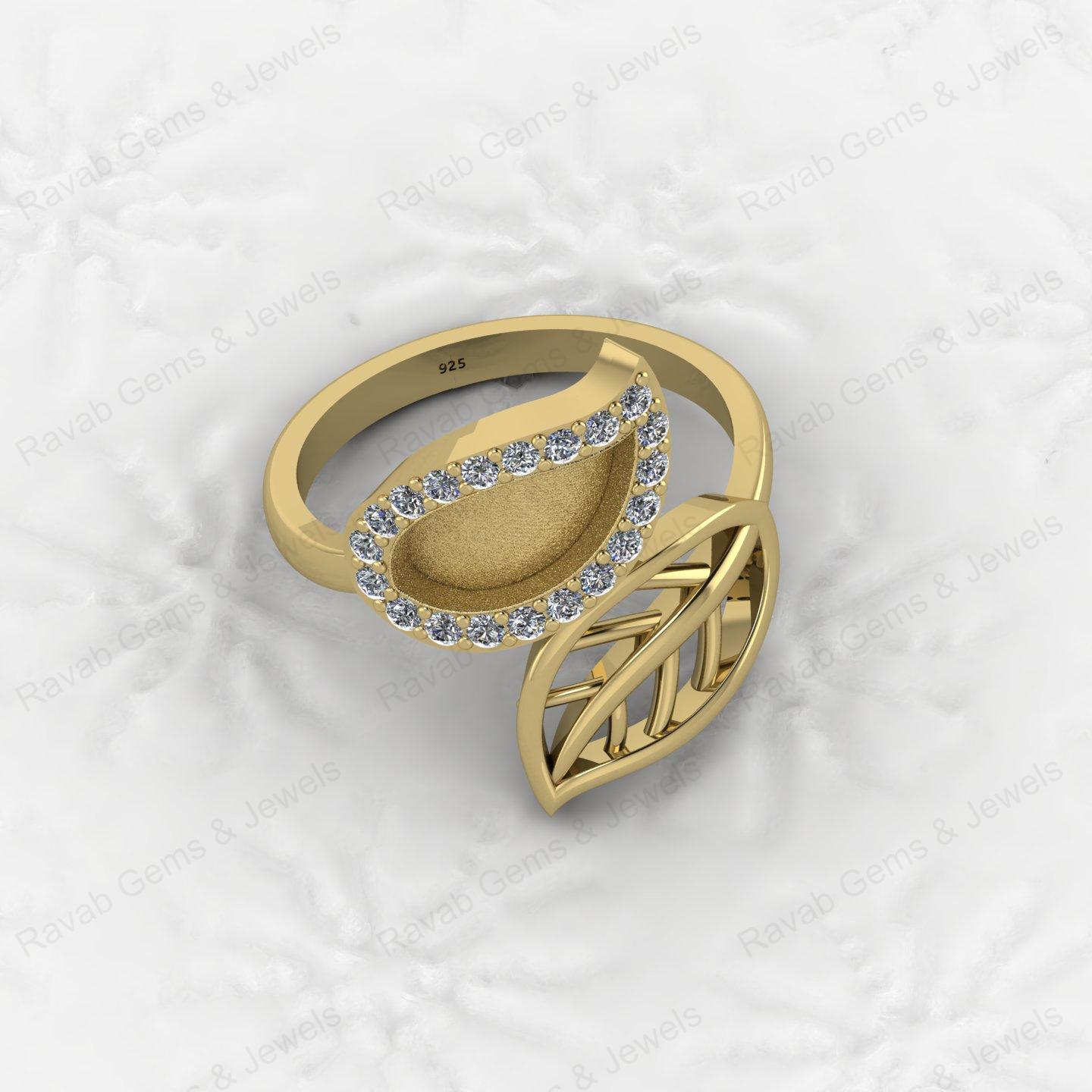 Genuine 925 Silver Nature Inspired Leaf With CZ Semi Mount Blank Setting Ring Good For Resin & Ashes Work Keepsake DIY Jewelry