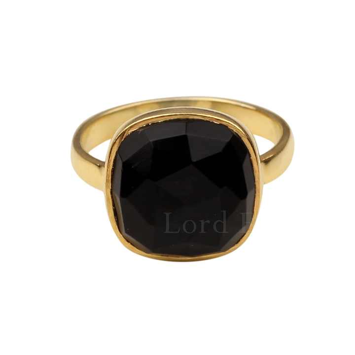 Latest Simple Design New Arrival Trendy Luxury 12mm Black Onyx Gold Plated Sterling Silver Personality Chunky Gem Ring for Women