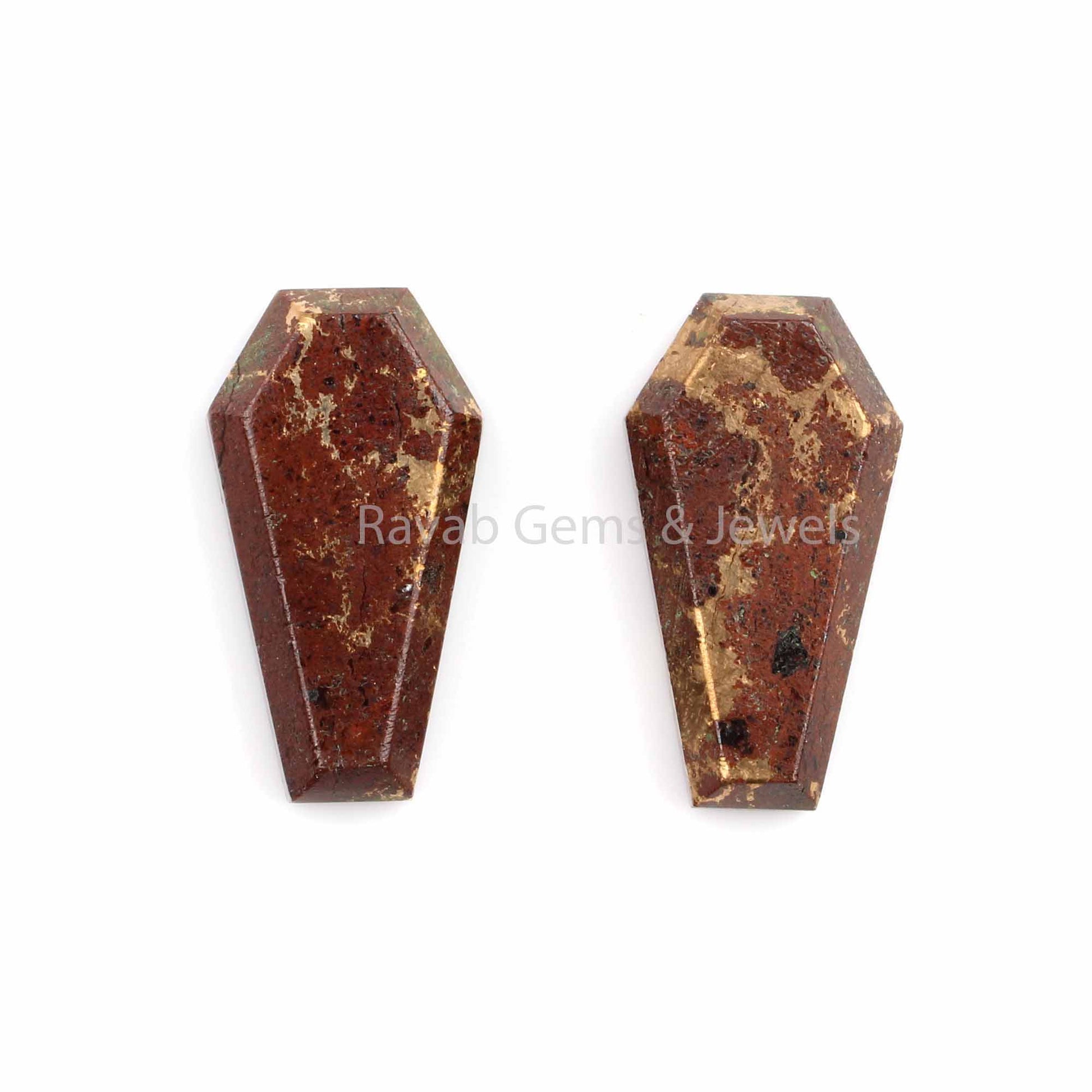 Lava Copper Coffin Shape 12x22mm Calibrated Cabochon Gemstone For Jewelry, Loose Beads Stones For DIY Jewelry Making, Earring Stones 2 Pcs