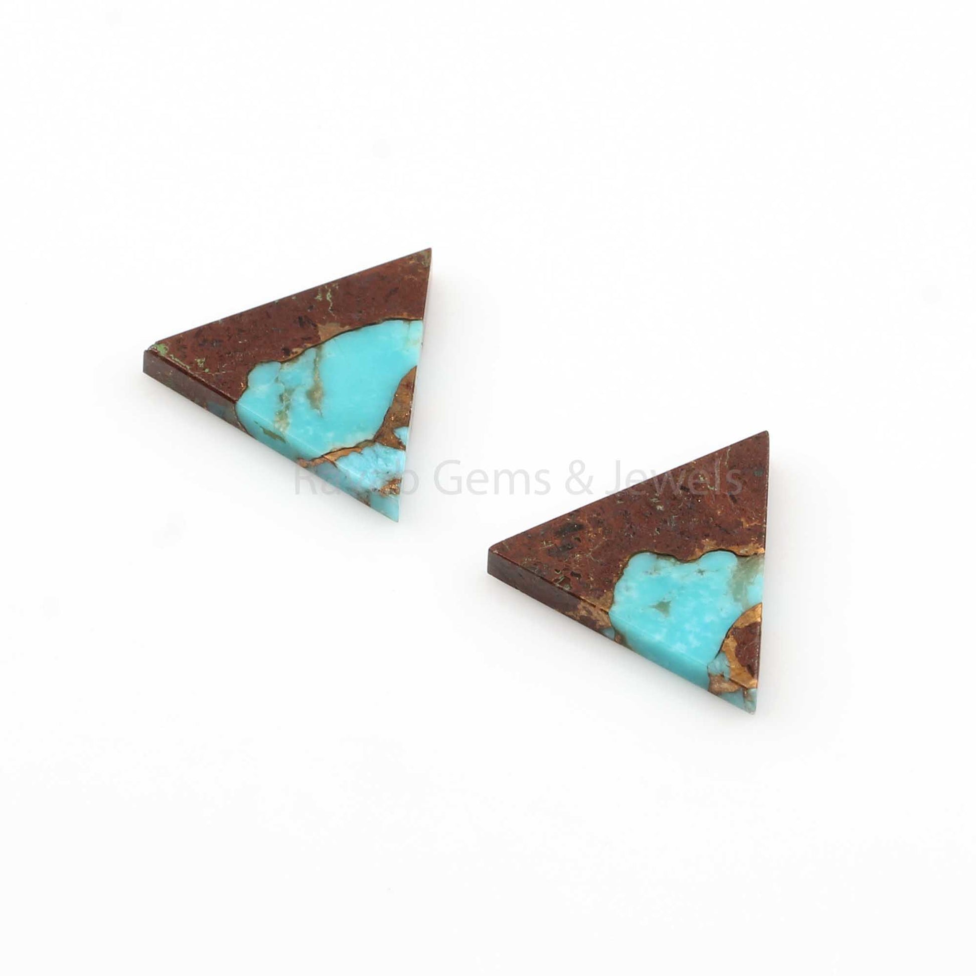 Lava Copper Turquoise Triangle Smooth Flat Gemstone, Loose Beads Calibrated Stone For Matching Jewelry Earring For Sale 12mm - 2 Pcs Set