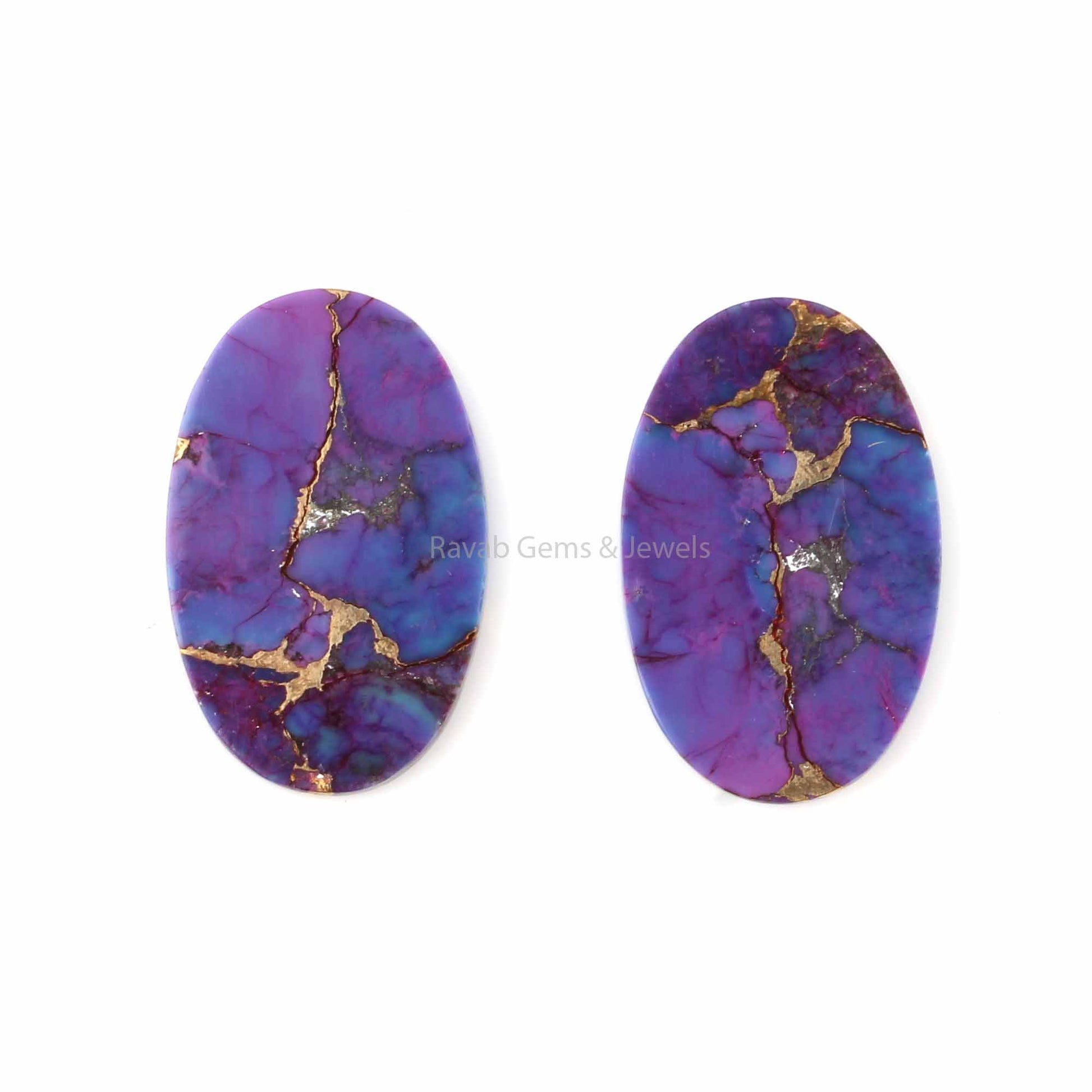 Mohave Purple Copper Oval shape 12x19mm Flat Gemstone For Jewelry, Mohave Copper pendant, earring making beads 2 pc set