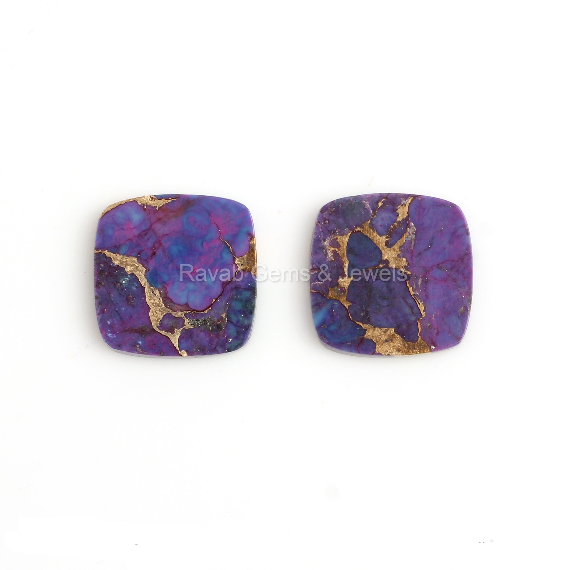 Mohave Purple Copper Turquoise Cushion Shape Both Side Flat Gemstone, Calibrated Stones, Loose Beads Stone For Jewelry Making 12mm 2 Pcs Set
