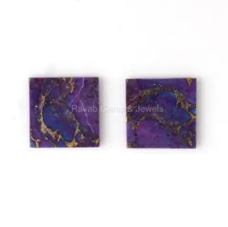 Mohave Purple Copper Turquoise Square Shape Flat Calibrated Gemstone, Loose Gemstone ForJewelry Making, Stone For Gifted 12mm 2 Pcs Set