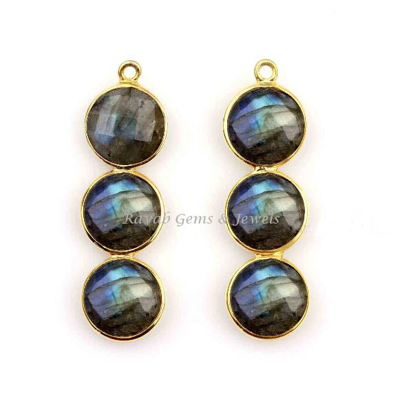 Multi Labradorite Round Gold Plated 925 Sterling Silver Connetor & Charms - Faceted Charms Connector - Jewelry Accessories - 1 Piece 10mm
