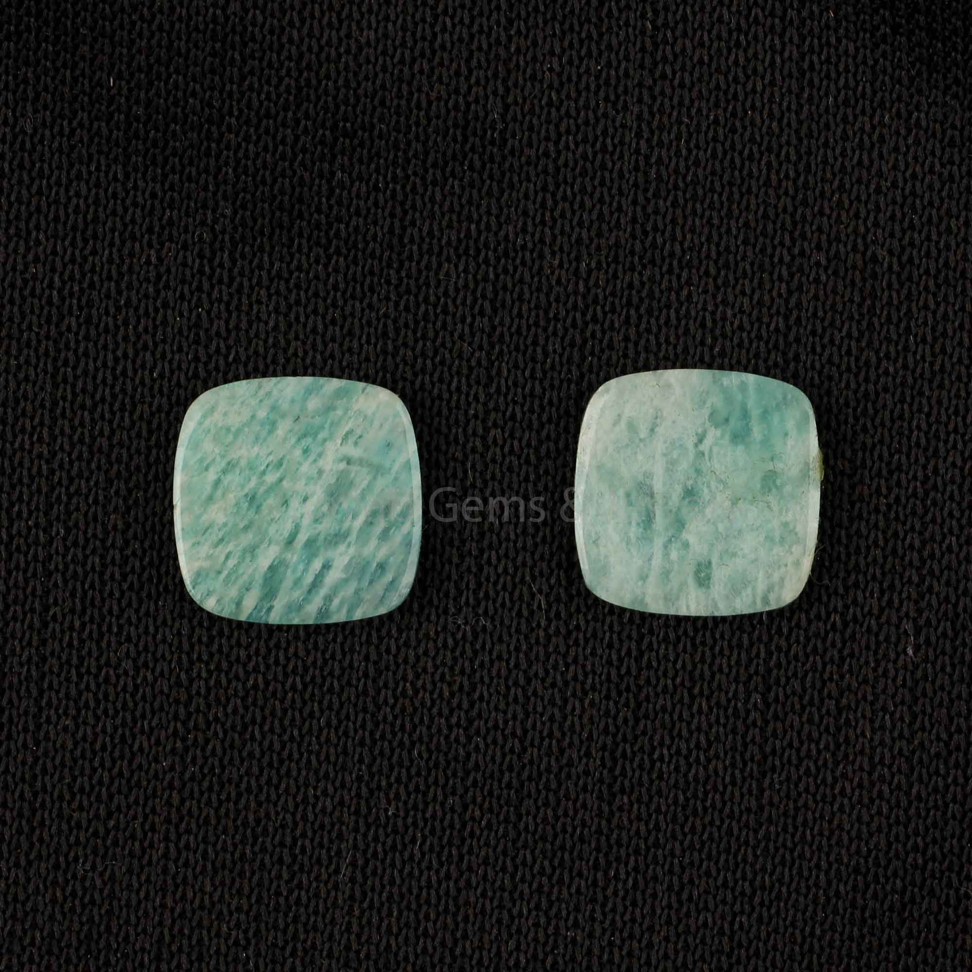 Natural Amazonite Cushion Shape 12mm Both Side Flat Gemstone, Calibrated Stones, Matching pair Stone For Jewelry Making 2 Pcs Set