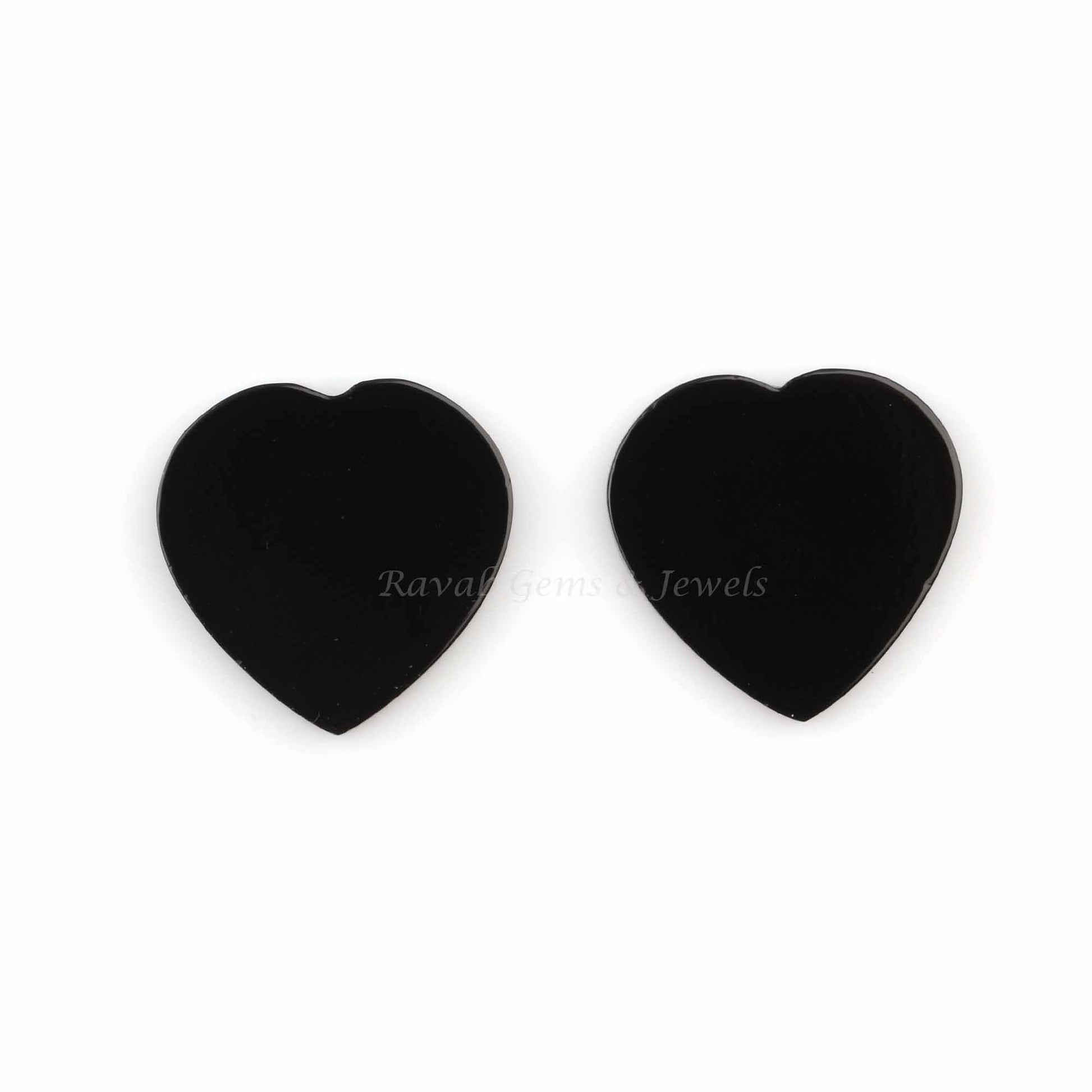 Natural Black Onyx Heart Shape Flat Smooth Gemstone For Jewelry, Black Onyx Stone For Jewelry Ring Earring Making Stone 2 Pcs Set All Sizes