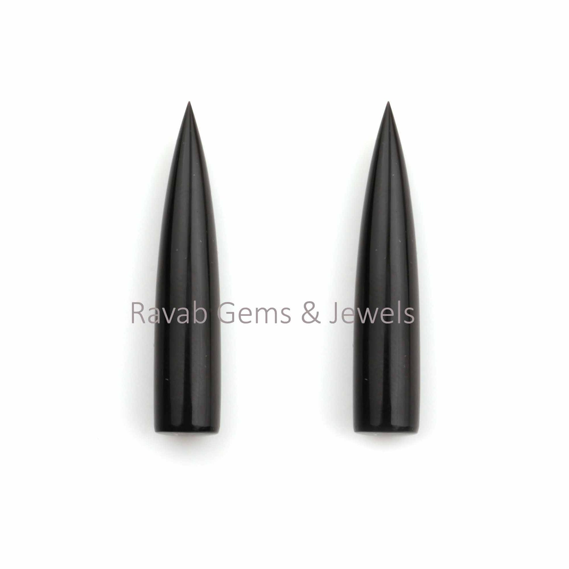 Natural Black Onyx Long Smooth Bullet Shape Gemstone For Jewelry, Loose Beads Calibrated Stones For Matching Jewelry Making 2 Pcs Set 6x30mm