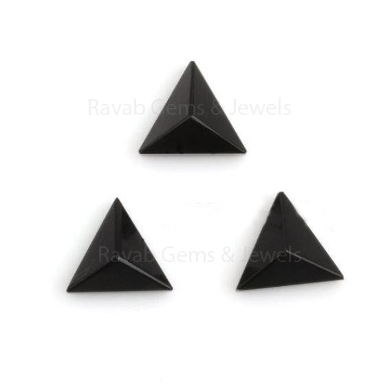 Natural Black Onyx Triangle Flat Back Pyramid Step Cut Faceted Cabochon Gemstone, Loose Beads Calibrated Stones For Earring 5 Pcs Set