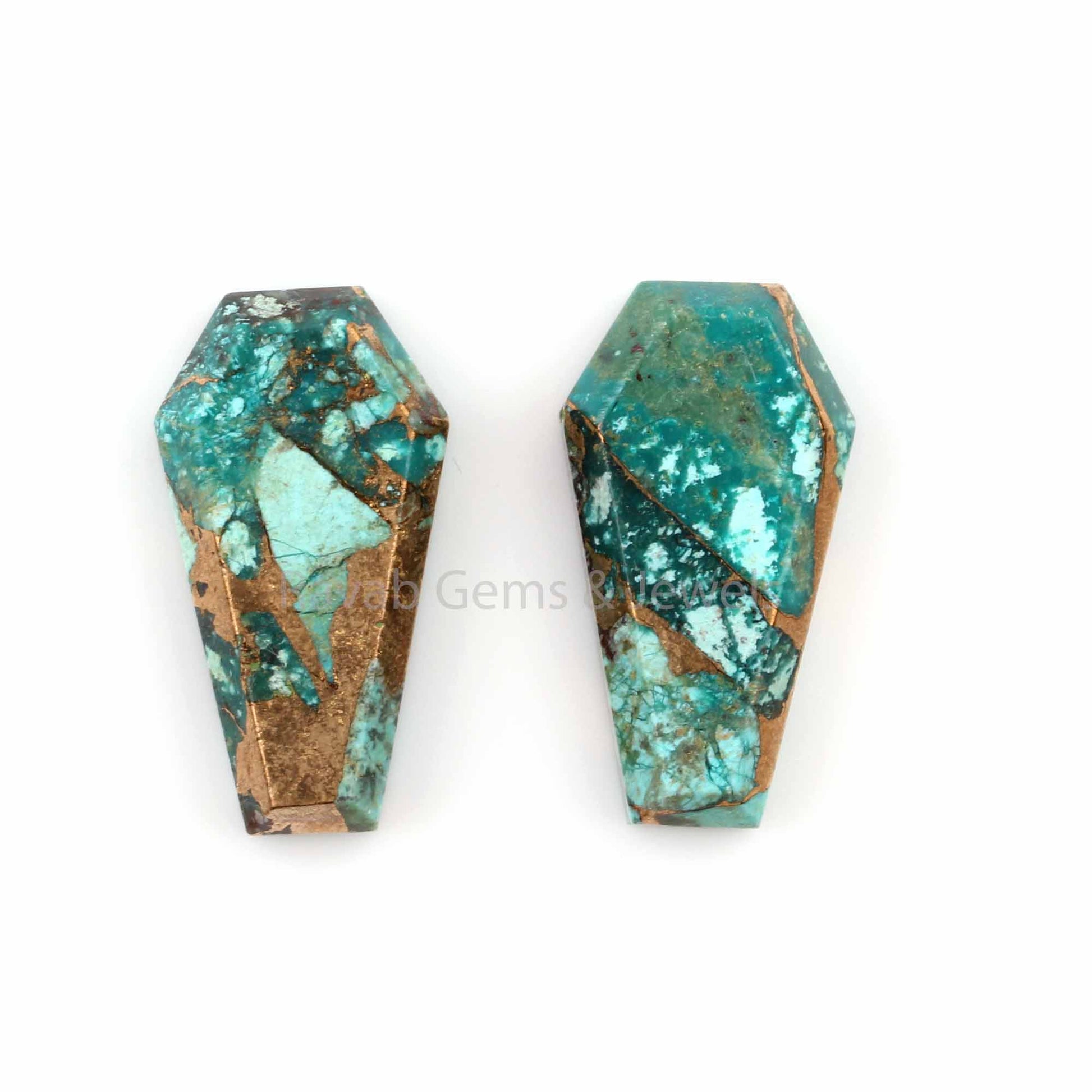 Natural Chrysocolla Copper Coffin Shape 12x22mm Flat Back Gemstone For Jewelry, Loose Beads Calibrated Stone For Matching Earrings 2 Pcs