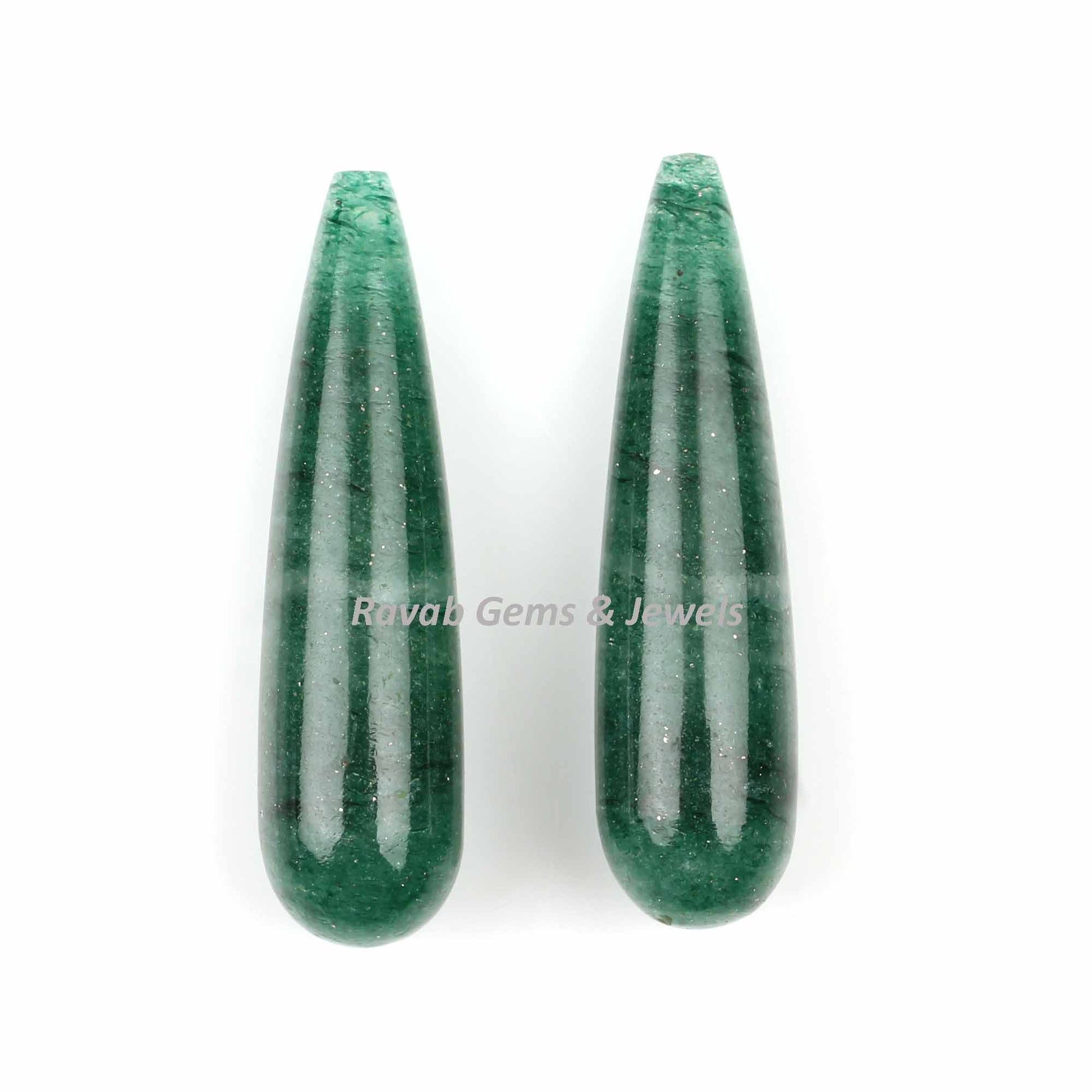 Natural Green Aventurine Long Drops Gemstone, Calibrated Smooth Teardrop Stones, Best Quality Stone For Jewelry Earring Making 9x30mm 2 Pcs