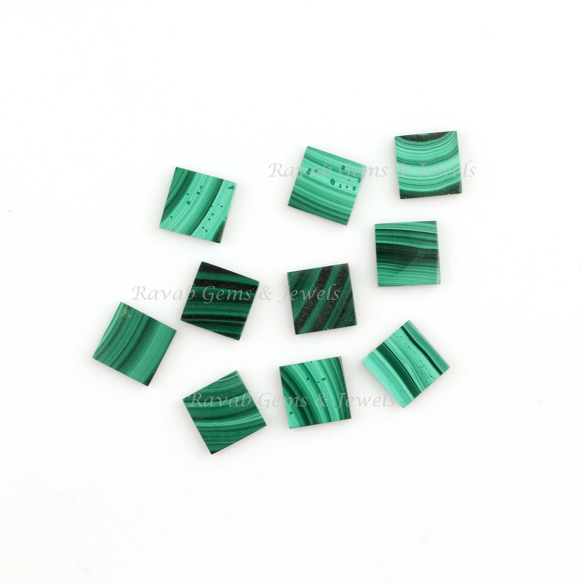 Natural Green Malachite Square Flat Gemstone for Jewelry, Loose Beads Stone For Jewelry Making Stone 12mm 5 Pcs Set, All Sizes Available