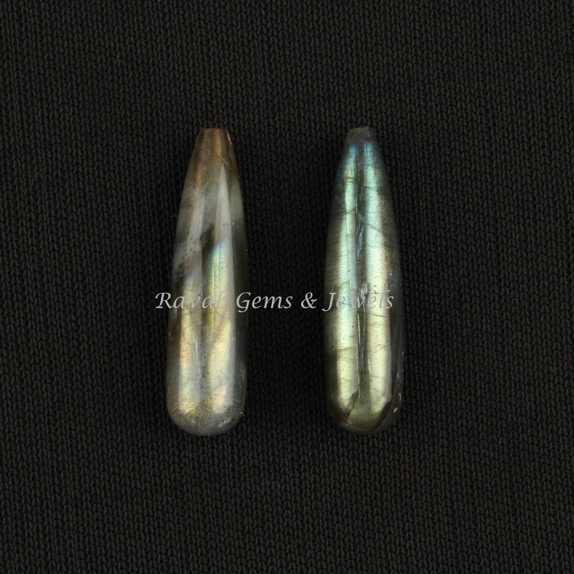 Natural Labradorite 9x30mm Smooth Drop Gemstone, Teardrop Long Loose Beads Stones For Jewelry Earring Making, Calibrated Pair- 2 Pcs Set