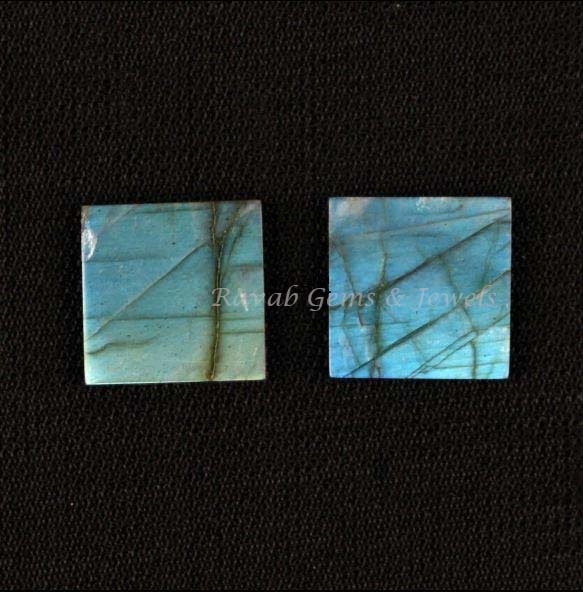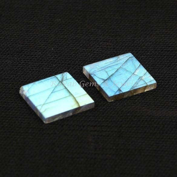 Natural Labradorite Square Shape Gemstone For Jewelry, Blue Fire Labradorite For Earring Pendant Making, Flat Pair Stones 12mm 2 Pcs Set