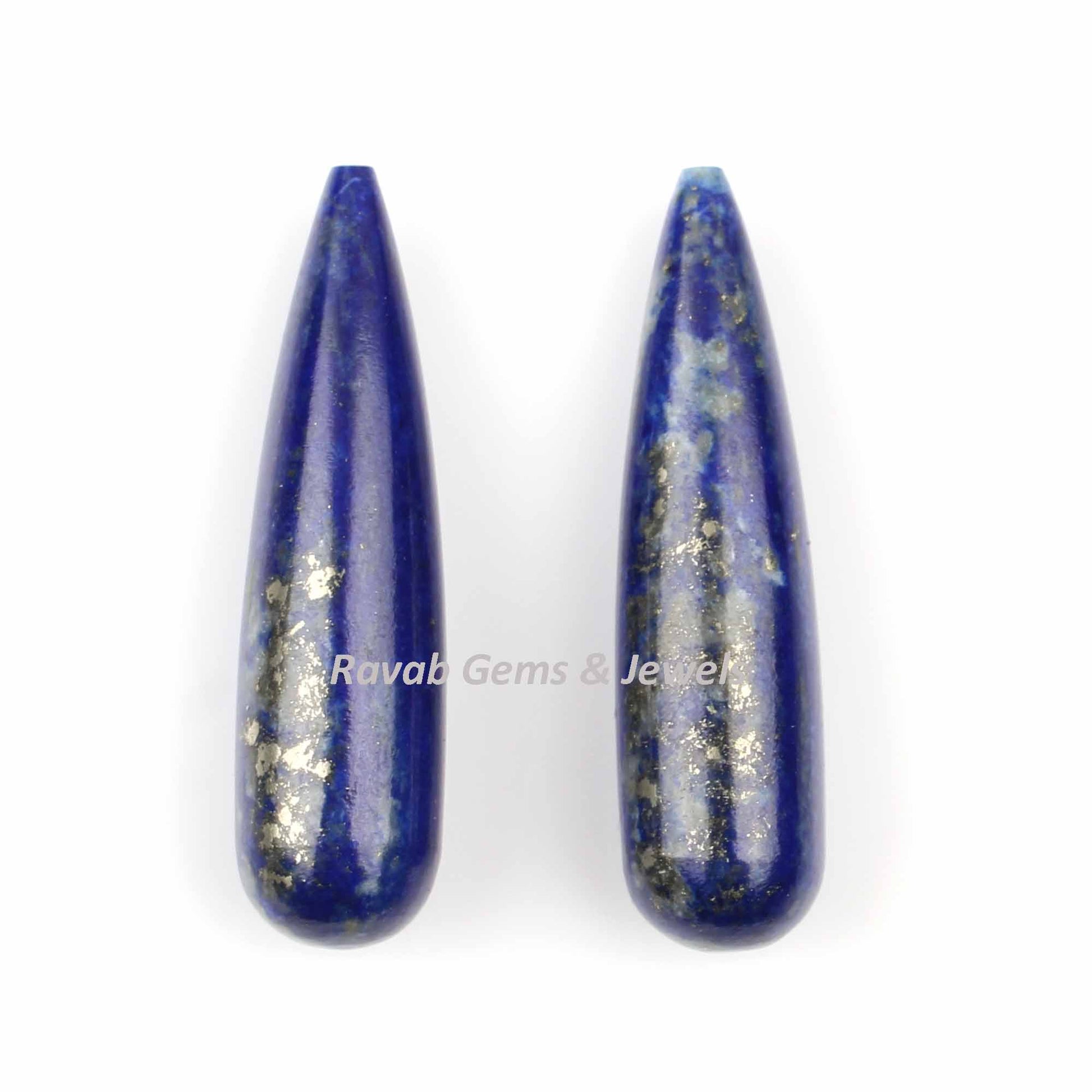 Natural Lapis Lazuli Drops Smooth Gemstone, Loose Beads Calibrated Semi Precious Stone, Long Teardrop Earring Stones 8x30mm 2 Pcs Set
