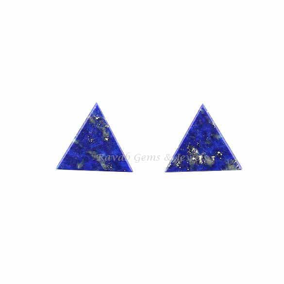 Natural Lapis Lazuli Triangle Shape Flat Gemstone For Jewelry Making, Loose Beads Stone For Earrings Making Beads 2 Pcs Set 6mm-14mm