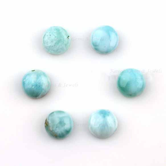 Natural Larimar, Larimar Round shape 6mm-18mm Calibrated Cabochons Gemstone |Larimar Calibrated Cabochons for Jewelry making beads 5 pcs set
