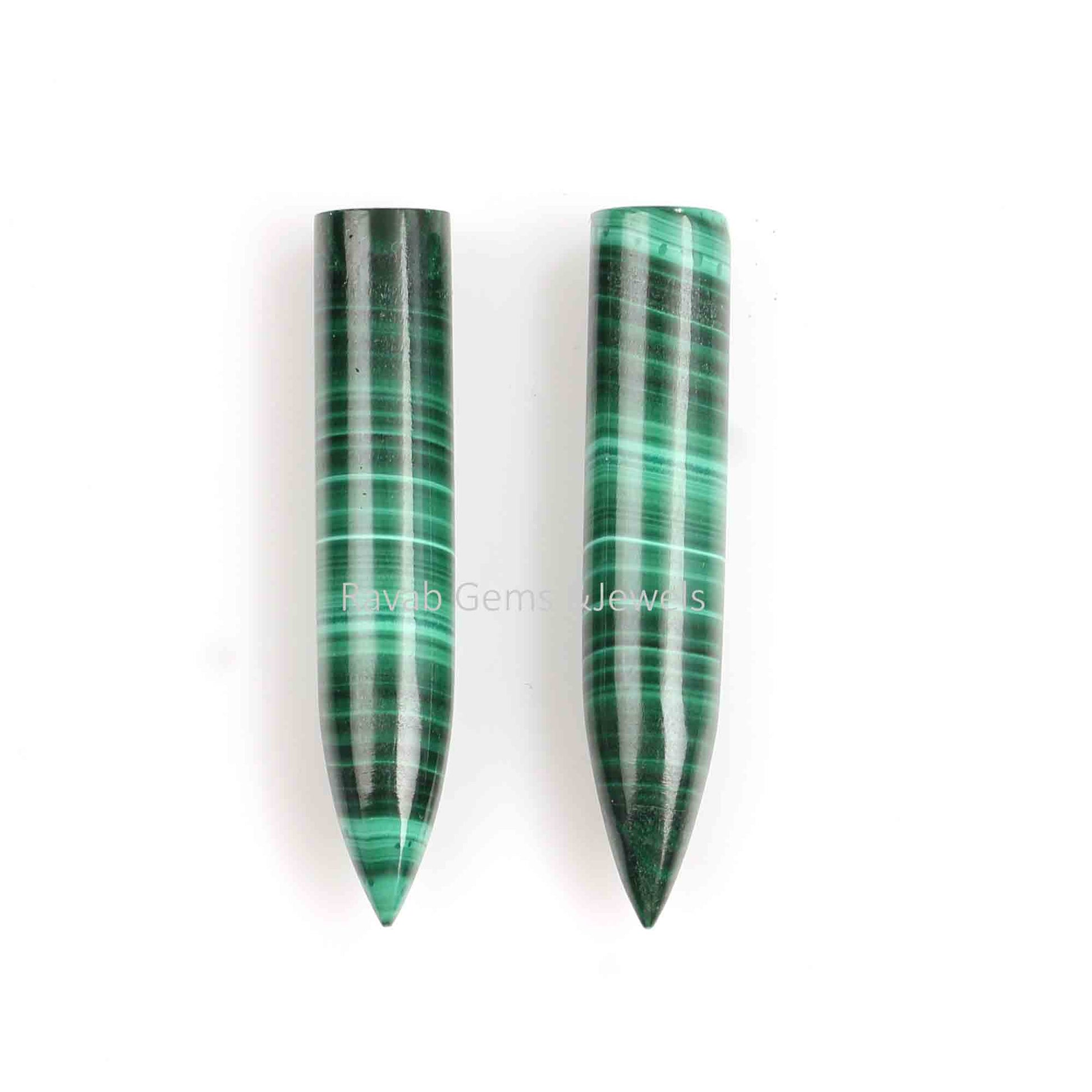 Natural Malachite Long Bullet Shape Gemstone For Jewelry, Loose Beads Calibrated Stone For Matching Jewelry Making 2 Pcs Set All Sizes