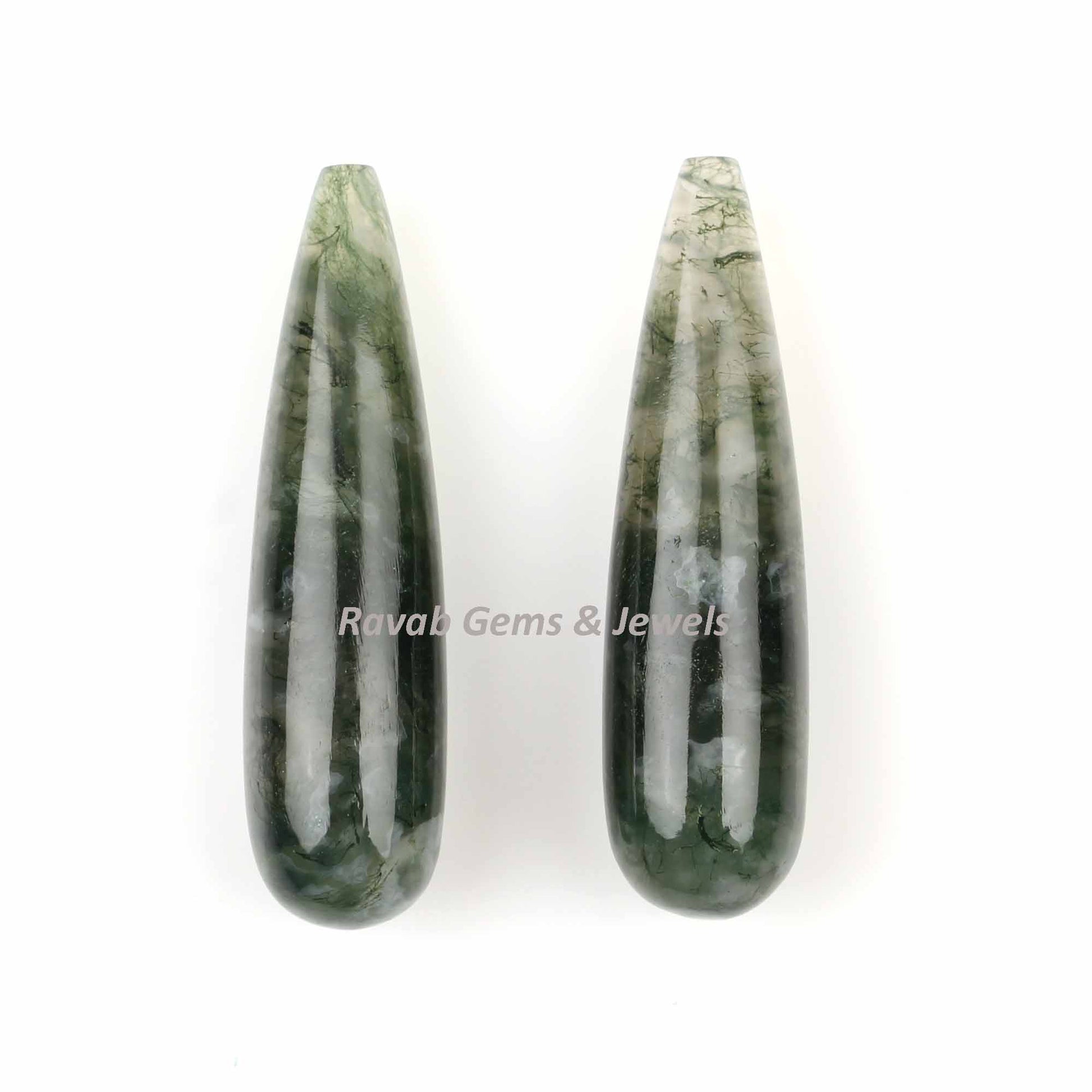 Natural Moss Agate Drops Smooth Gemstone, Calibrated Loose Beads Long Teardrop Semi Precious Stone For Jewelry Earring 8x30mm 2 Pcs Set
