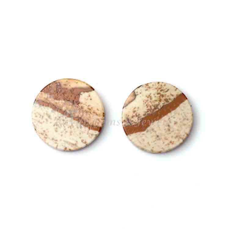 Natural Picture Jasper Round Coin shape 12mm Flat Gemstone for jewelry making, Picture Jasper pendant, earrings making beads 2 pcs set