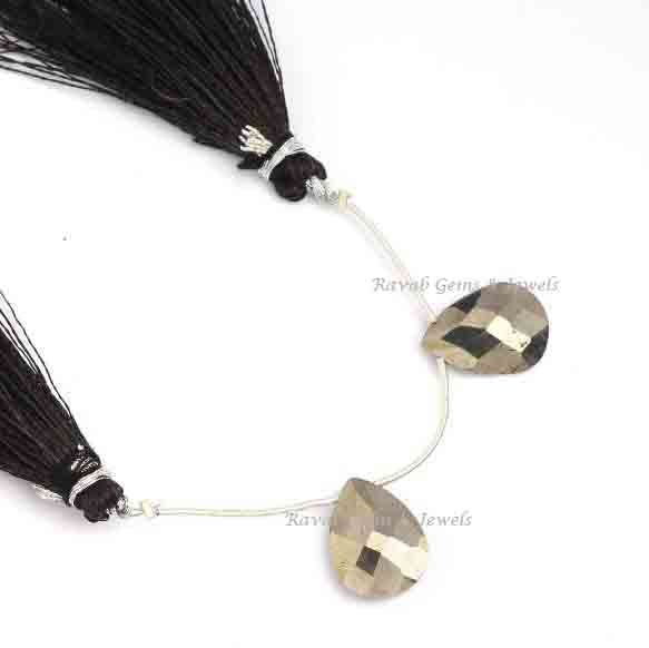 Natural Pyrite Fools Gold 12x16mm Pear Shape Briolette Cut, Calibrated Faceted, Semi Precious Stone, Loose Gemstone, For Jewelry Making 2 Pc