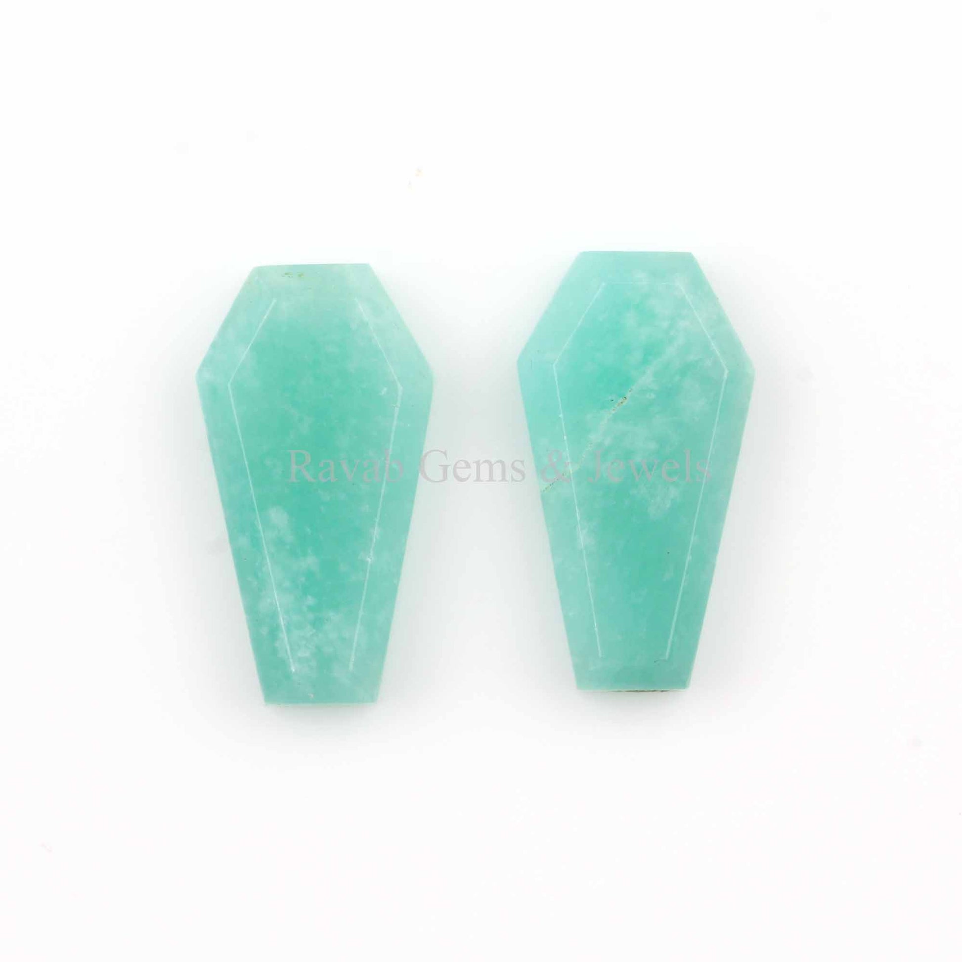 Natural Amazonite Coffin Shape 12x22mm Cabochons Gemstone For Jewelry Making, Calibrated Loose Beads Stone For Jewelry Making 2 Pcs Set