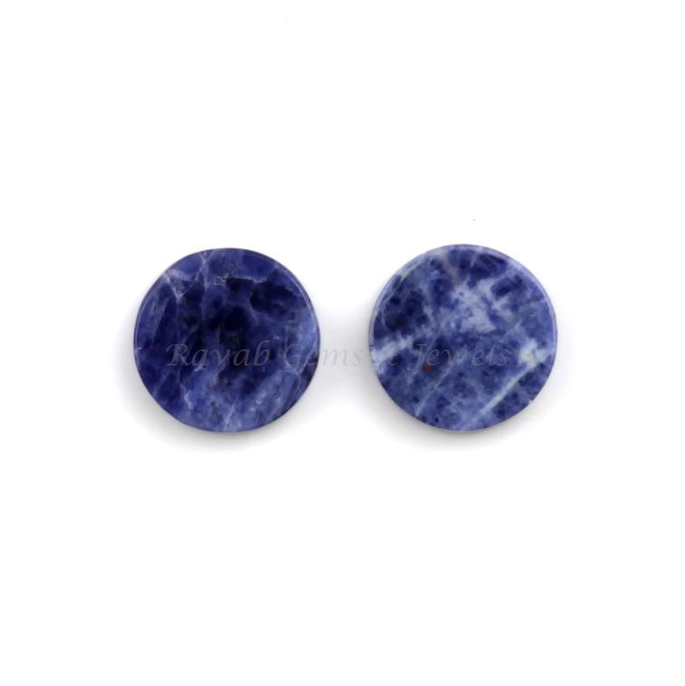 Natural Sodalite Round Coin Disc Shape 12mm Flat Gemstone For Jewelry Making, Loose Beads Calibrated Stone Matching Jewelry Earring 2 Pc Set