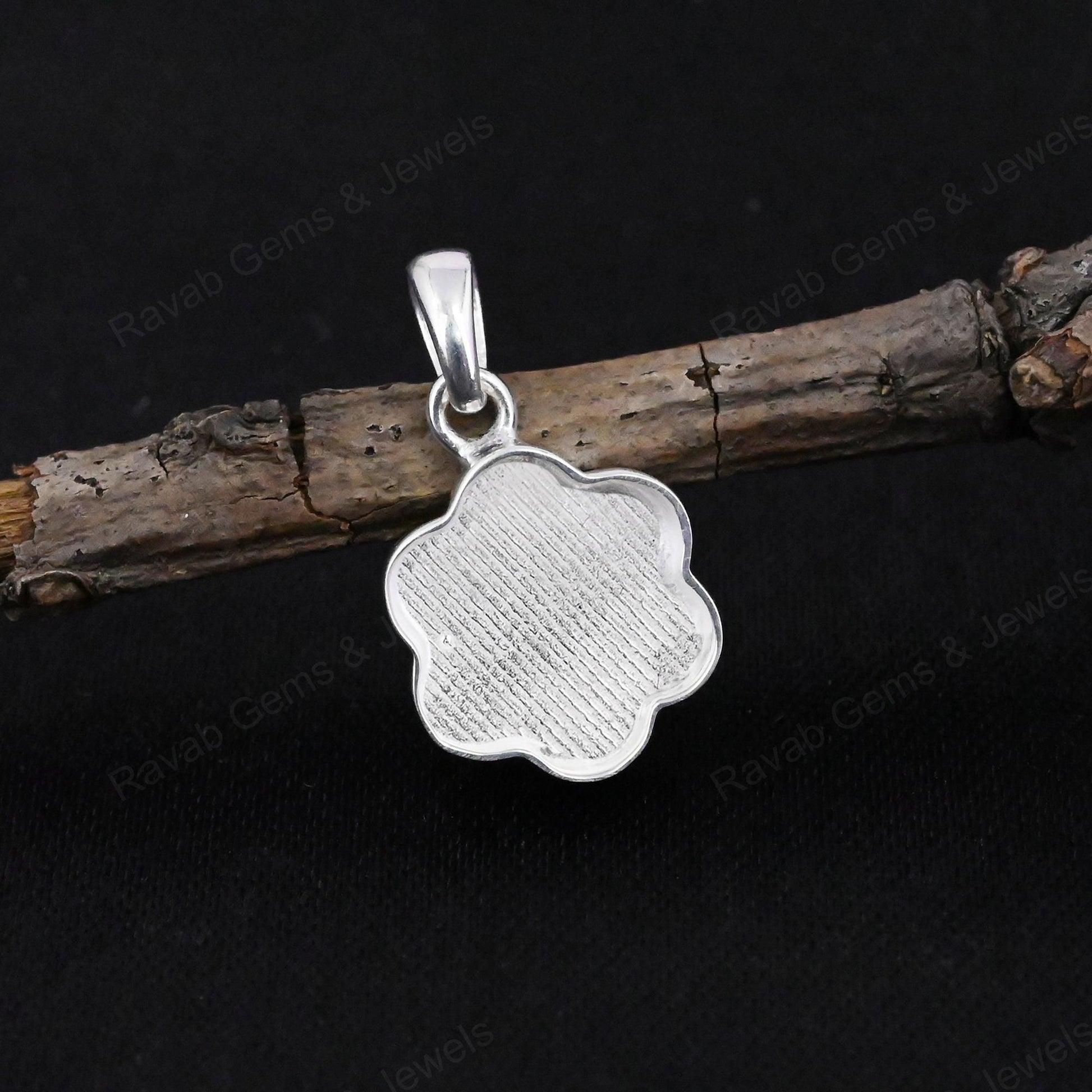 High Quality Solid 925 Silver 12mm Flower Blank Collet Semi Mount Charm Pendant Stone Setting For Jewelry Findings Components