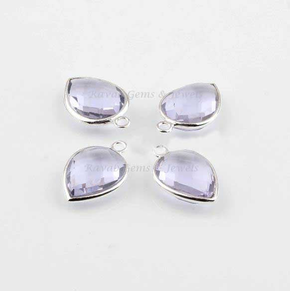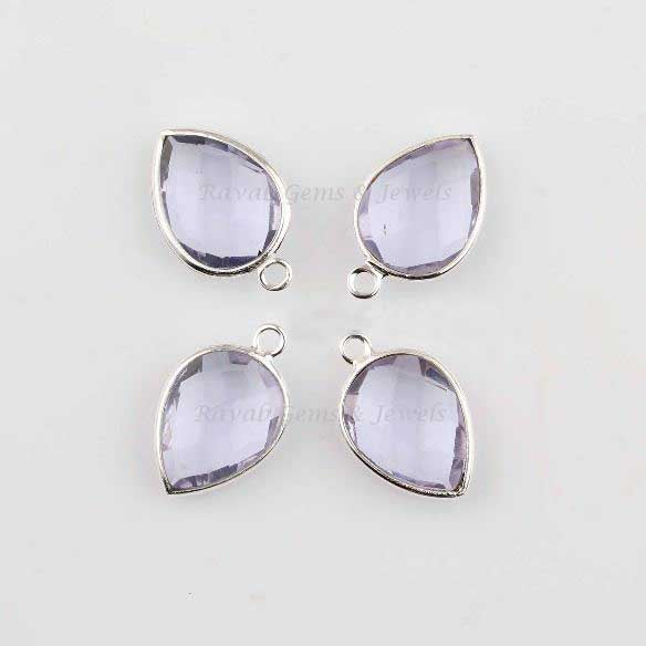 Pink Amethyst Quartz Pear Faceted Gemstone 925 Sterling Silver Charms Jewelry, 12x16mm Briolette Calibrated Gemstone Charm, 1 Pc Wholesale