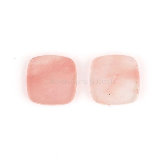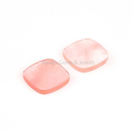 Pink Cherry Quartz Cushion Shape Gemstone Loose Beads for Jewelry 8-16mm Set of 2 Semi Precious Flat Stone