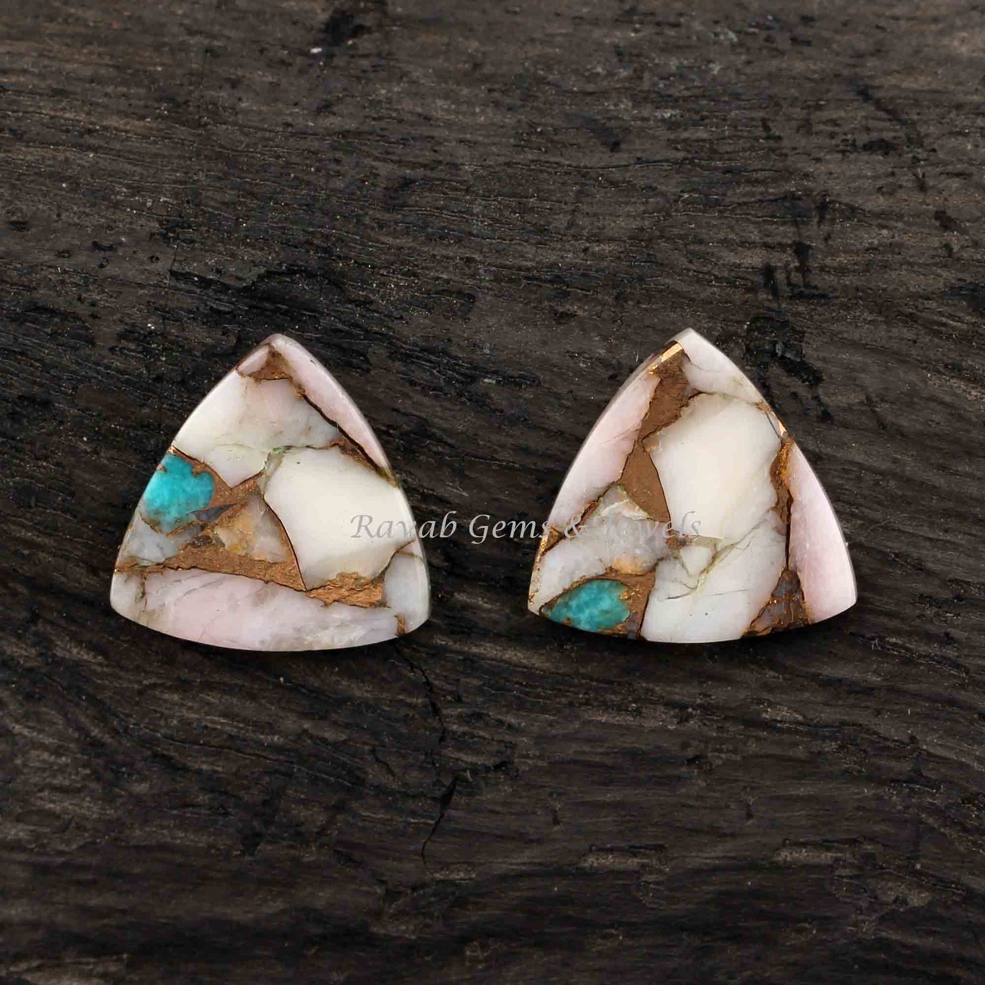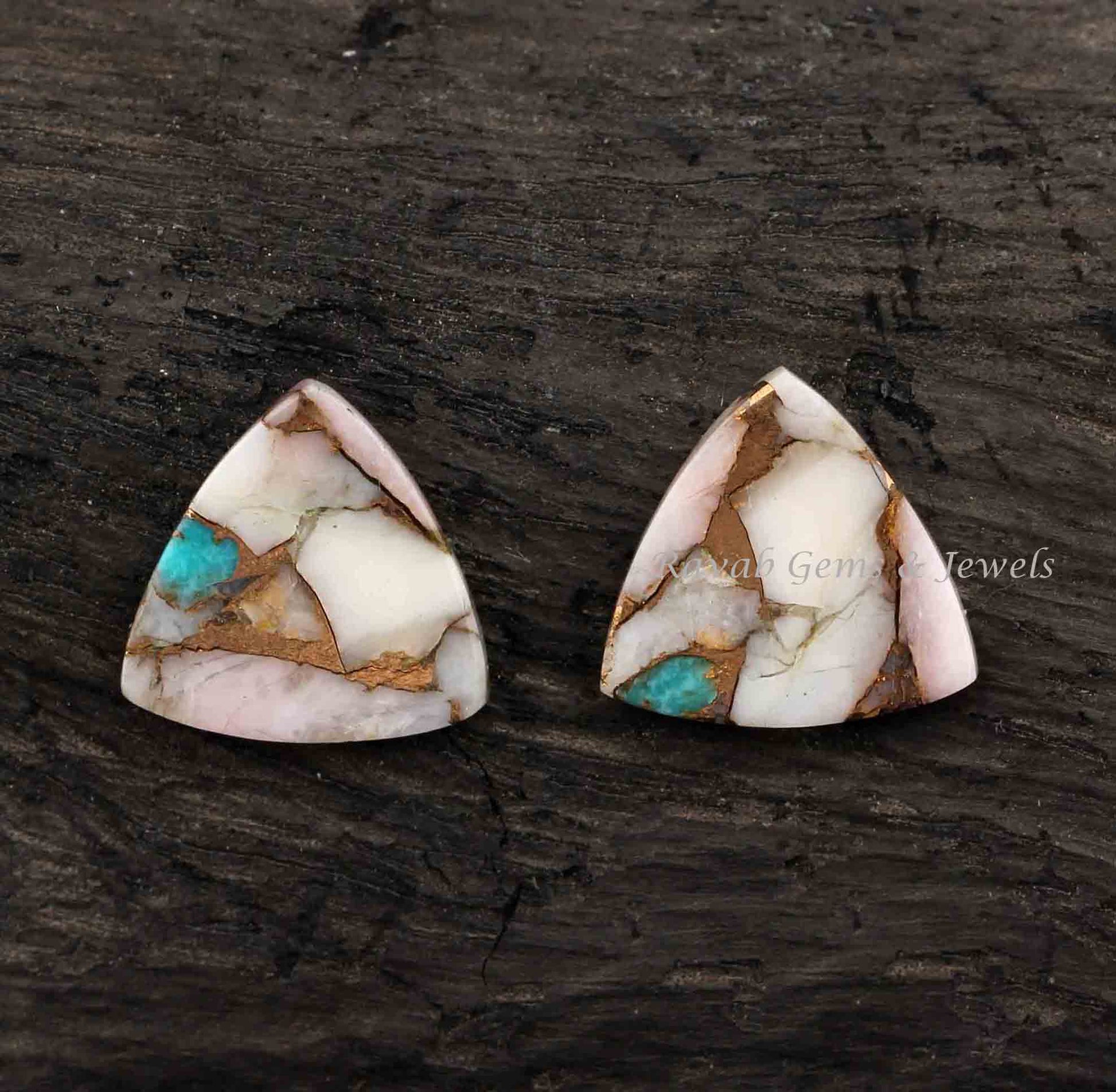 Pink Opal Copper Turquoise Trillion Shape Flat Calibrated Stones, Loose Beads For Jewelry Making, Best Quality Stone For Jewelry 2 Pcs Set