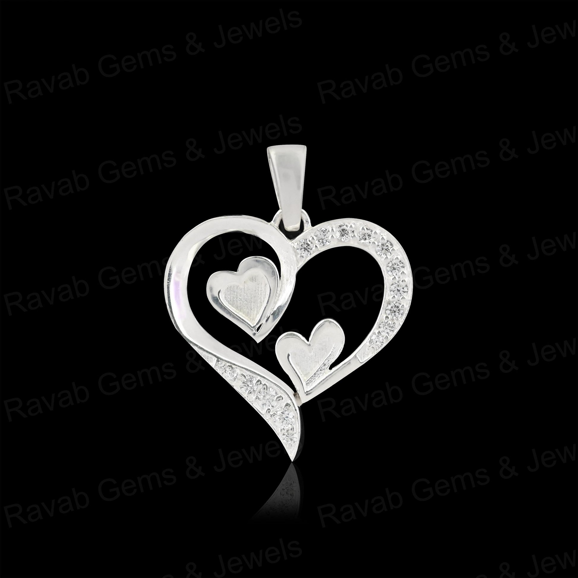 High Quality 925 Silver 24mm Double Heart With Zircon Semi Mount Blank Charm Pendant Setting Making Resin & Ashes DIY Jewelry